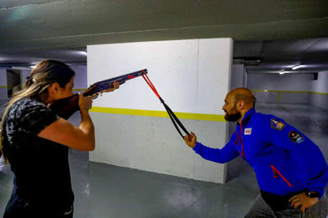 “The shooting clubs were forced to close… I had no other option” than to train in the garage, she said.